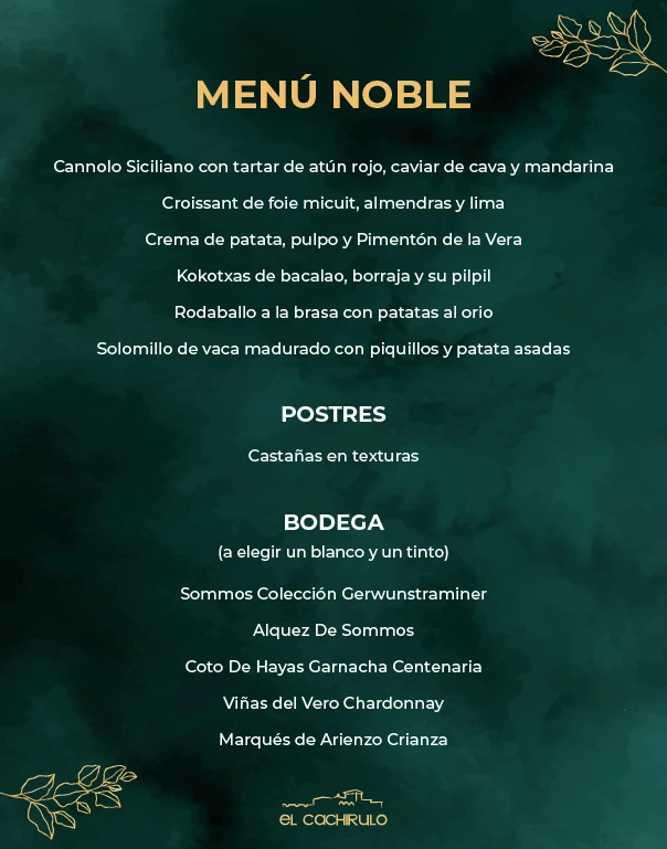 - Estos menús no serán canjeables ni se podrán reservar en festividades con menús especiales.